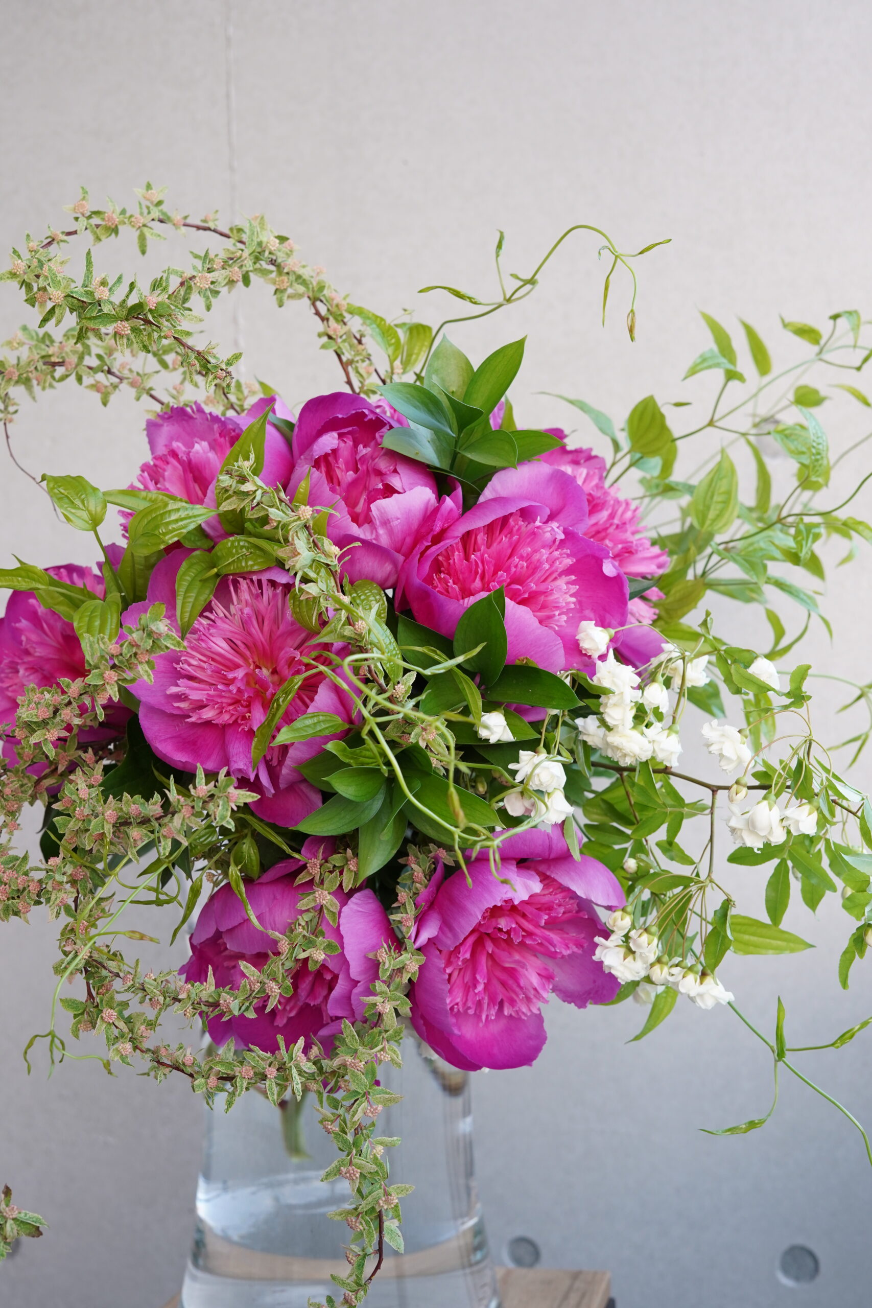 今回、シャクヤクを主役にしたブーケをつくってみました。