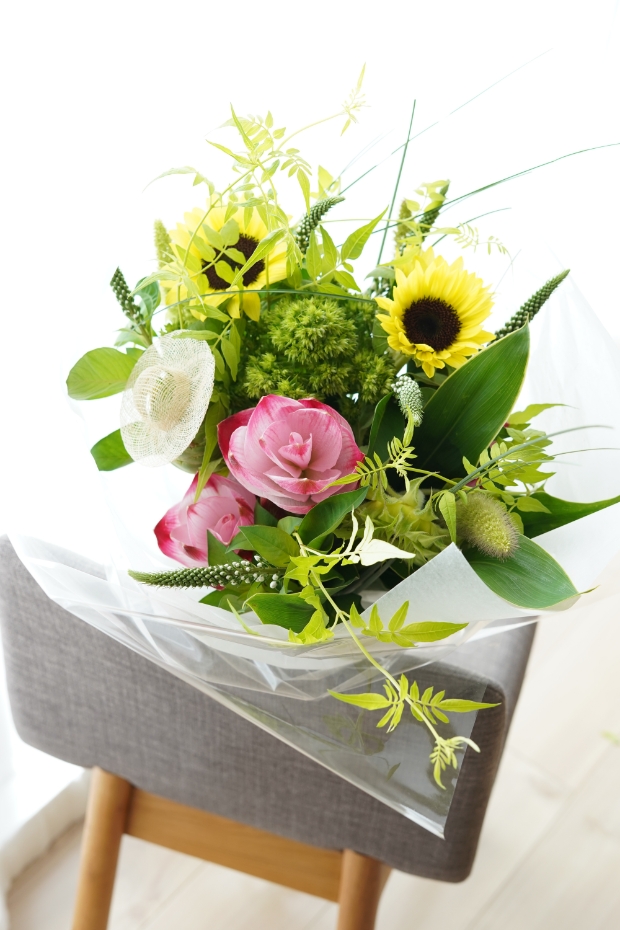 大切な方が体調を崩され、ふさぎこんでしまったそうです。「お花で心が癒されるといいなと思って」と、キラキラした笑顔でご依頼くださいました。