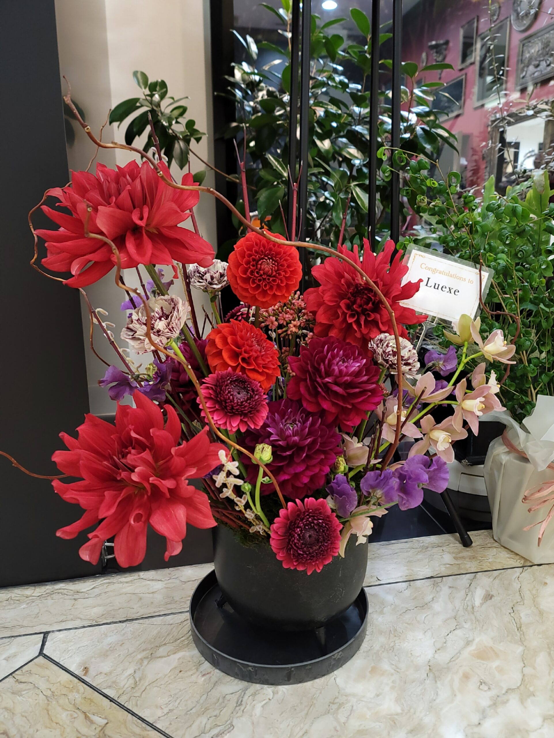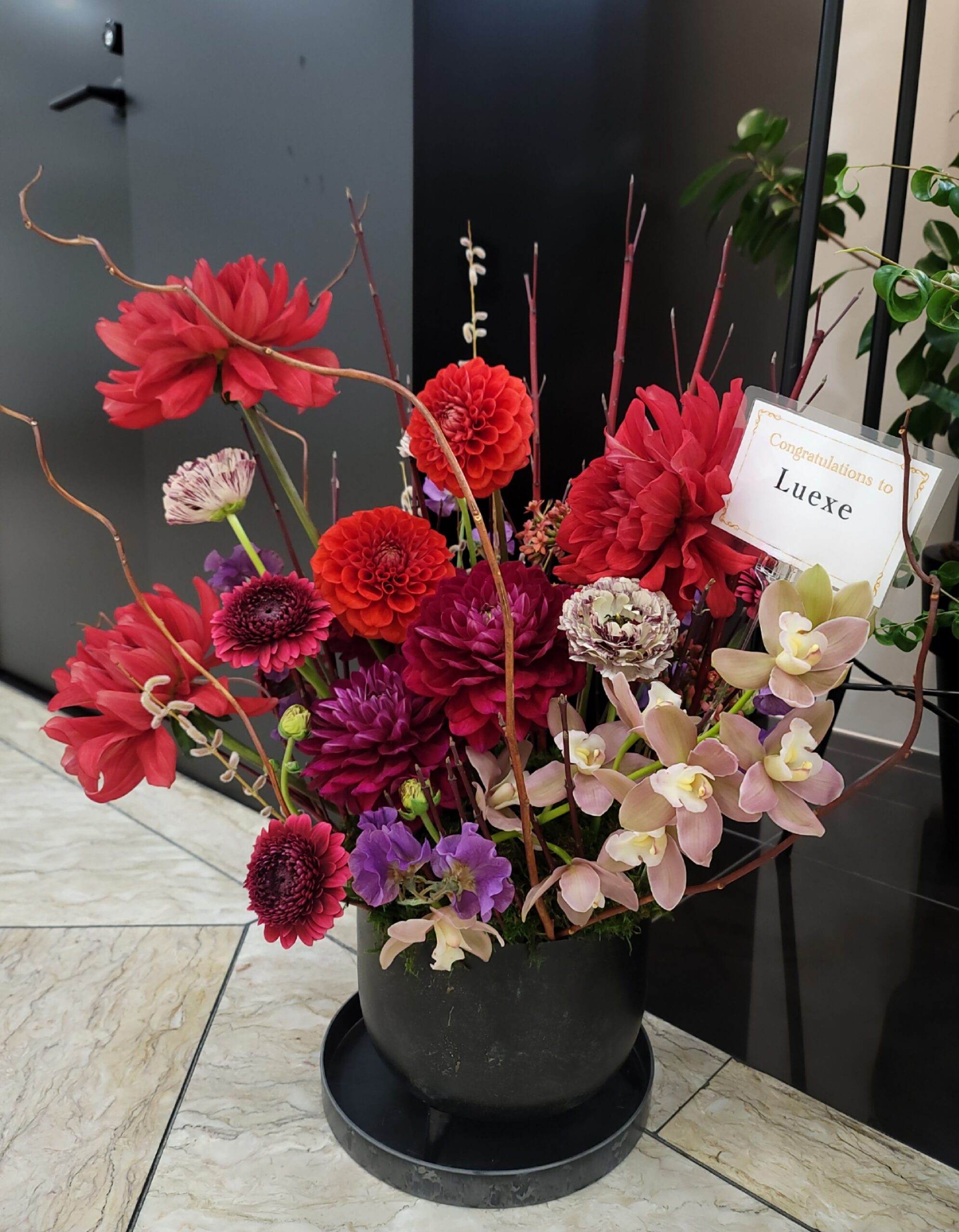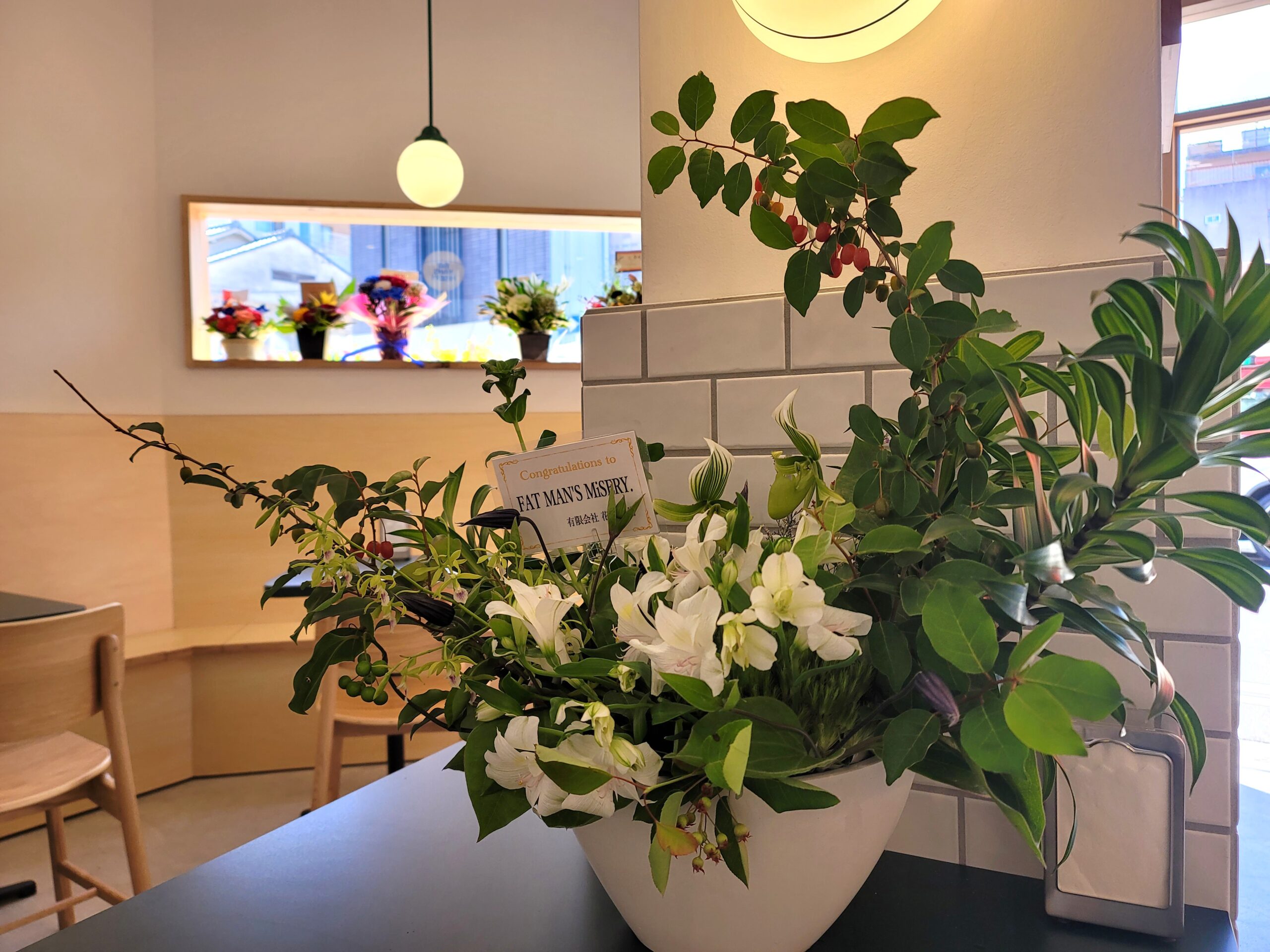 、その方と長年働いて来られた方からお祝い花をご依頼いただきました。